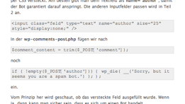 Nun habe ich endlich mal das Tutorial von Nasendackel, nach dem es neu unter apfelquak veröffentlich wurde, angewendet. Damit soll Kommentarspam der Vergangenheit angehören. Mal schauen, ob es bei mir auch wirkt…