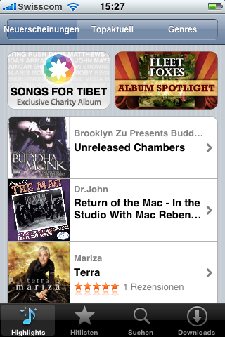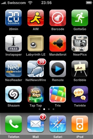 Zum Schluss noch ein paar Screenshots vom iPhone und eine Liste der Apps, die ich momentan auf dem iPhone installiert habe (heisst aber nicht, dass ich alle Empfehle; übrigens alles Kostenlose). Reviews einzelner Apps werde ich teilweise in den nächsten Tagen hier veröffentlichen…