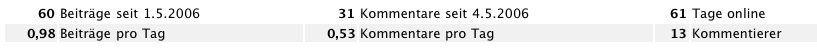 So, jetzt es das Blog scho sage ond schreibe 2 Mönet online. Ich möcht höt ond in Zuekonft emmer am erste Tag im Monet en Bilanz zie (wie scho am 1. Juni) ond eu di aktuelle Zuegreffszahle zeige. Wenn er of wiiter klicked gods ab zo de Bilanz vo dem Monet