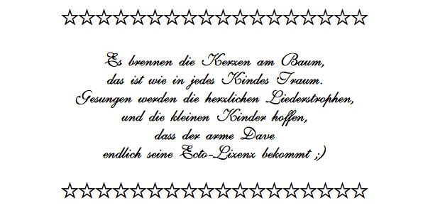 Beim x-mas-special von Guennersen, bei dem nur ich mit dem oben abgebildeten Gedicht teilgenommen habe, habe ich eine Lizenz von ecto gewonnen.